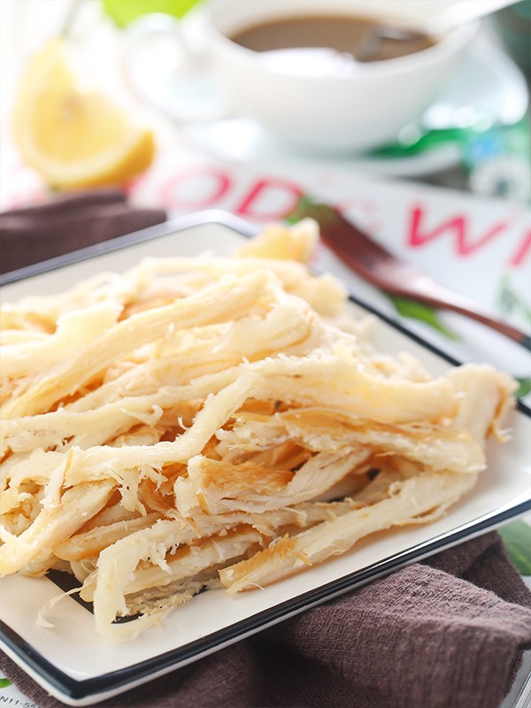 经不同工序,制成生食、裹粉、素干、味干、烟熏等系列,肉质